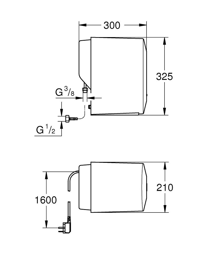 高仪瑞德 单一烧水器 产品编号 40701000 EAN编码 4005176994371 颜色 镀铬 This product will be discontinued soon 产品规格(PDF) Product main features 蓄热3升沸水 水压:1至7巴 带灵活连接软管和沸水连接 CE认证 能耗为2100瓦 备用能耗为15瓦 电源 230 V 50 Hz 30 VA 蓄热热水器尺寸: 325 x 210 x 300毫米 Technical Product Information 尺寸图