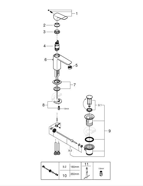 With its characteristic soft square design, this compact GROHE Dice single-lever mixer is sure to be a focal point in your bathroom. Its striking looks are complemented by a set of equally attractive features. The solid metal lever invites interaction with its elegant upwardly curved shape. Inside, the durable GROHE SilkMove ceramic cartridge ensures smooth, precise volume and temperature control, with an integrated temperature limiter to save energy. For even more sustainability, GROHE Water Saving technology limits consumption to an efficient 5l/min (at 3 bar), while still giving a powerful jet of water. A useful pop-up waste is operated by a small rod on the back of the tap, so you can open and close it without getting your hands wet. Thanks to the hard-wearing and easy to clean GROHE Long-Life finish, this bathroom mixer in dazzling chrome will stay looking pristine for years to come. Surprisingly easy! Designed for single-hole installation – with the help of the QuickTool, QuickGuide and QuickVideo, the tap can be fitted in record time. By the way: our Dice collection can perfectly combined with both round and square taps, showers, accessories and ceramics, to create a harmonious overall design.
